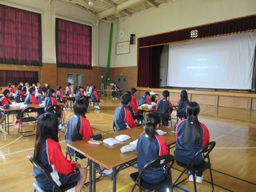 約4ヶ月を振り返りつつ、1学期終業集会が行われました。集会では生徒会長からのあいさつ、そして校長先生からは、周囲とのコミュニケーションのコツである「アイ(私)メッセージ」についてのお話がありました。1学期は、体育祭や遠足・宿泊的行事等、大きな行事がある中で、友達関係も含めたたくさんの学びがあったと思います。全校生徒一人一人、本当に大きな成長がありました。一ヶ月の夏休み期間を経て、2学期もさらに充実の学校生活になるよう頑張りましょう!