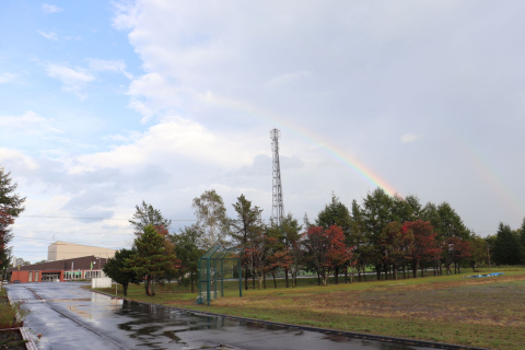 きれいな虹に感動もしましたが、生徒の下校時に雨が降らずホッとしました。
