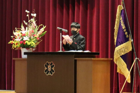 新入生代表より、虹別中学校の生徒として誓いの言葉を述べ、