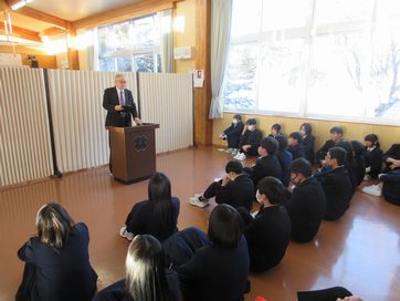 21日間の冬休みが終わり、本日から3学期が始まりました。朝、全校で始業集会を行い、校長先生からのあいさつ、そして生徒会副会長からは「いい3学期を過ごし、いい修了式を迎えられるように頑張りましょう!」との素晴らしいあいさつ。それを真剣に聞く生徒達。間違いなく、2026年も素晴らしい年になると確信しました!