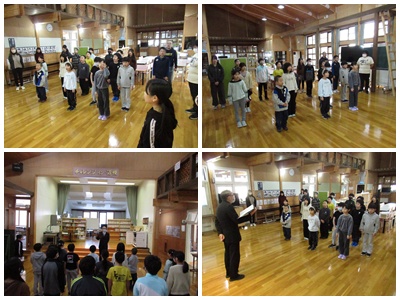 低・中・高学年でそれぞれゲームを企画しました。低学年は「クリスマスさがし」学校内に隠したサンタの人形などを見つけるゲーム。中学年は「サンタさんの一日」だるまさんが転んだの様なゲームを。高学年は「ろくつなおに」。手つなぎ鬼のようなゲーム。最後に、先生方よりクリスマスプレゼントが送られました。