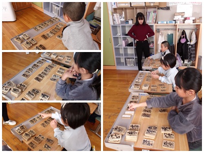 本日、低学年が先陣を切って百人一首の練習を行いました。