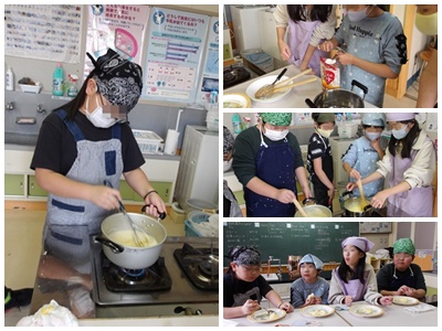さて、何の匂いかと家庭科室に行ってみました。そこでは、中学年がカスタードクリームを作っていました。
