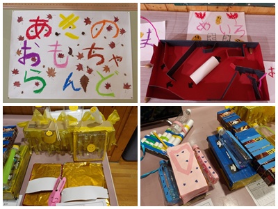 『おもちゃランド』と題して空き箱などを使い迷路やけん玉などを作りました。
