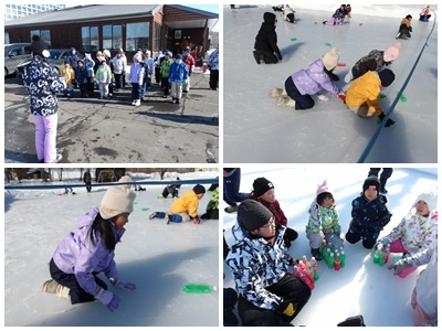 冬フェスティバルでは「沼ペット」「氷の上でボール運び」を行いました。