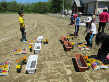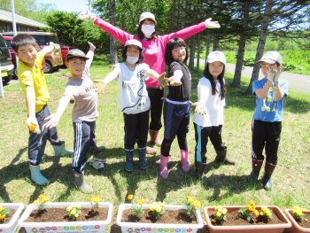 上手に植えることができて大満足の子どもたちです。