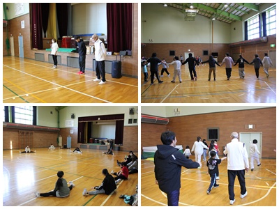 まずアップ代わりに手つなぎ鬼で体を温めてから準備体操。