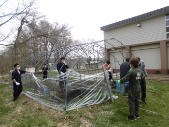 ビニールハウスの設置を行いました。畑作業が楽しみです。