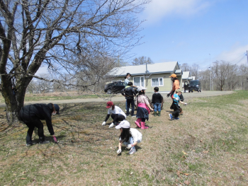 グラウンド周りの枝拾いを行い、とてもきれいになりました。