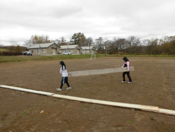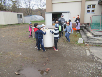 スケートリンクの枠板運びなどを全校児童22名が協力して行いました。