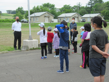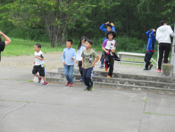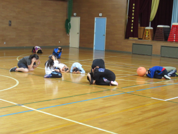 放送がかかると、身を潜めてシェイクアウトの姿勢をとる子どもたちです。