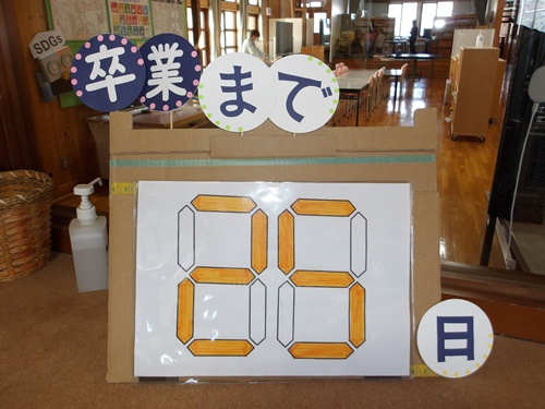 学校の玄関に卒業まであと何日とわかるプレートが置かれました。