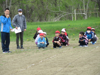 徒競走前の低学年です。ドキドキ感が伝わってきます。