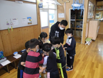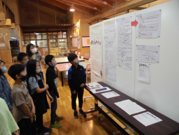 中休みに、子どもたちが夏休みに制作した作品を紹介し合い、交流しました。