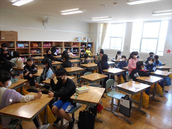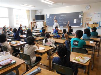 先生1人とクラス全体、数名のグループ、席の隣同士などで ” あいこじゃんけん ” 行い、あいこになった時は、「やったー!グー出すと思ったんだよねー。」など声が上がりました。