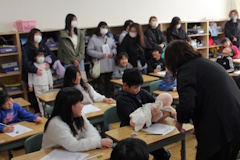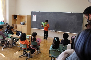 2月26日、1年生は生活科のまとめを発表し、2年生は性の学習の一環で「わたしのたん生」を参観していただきました。